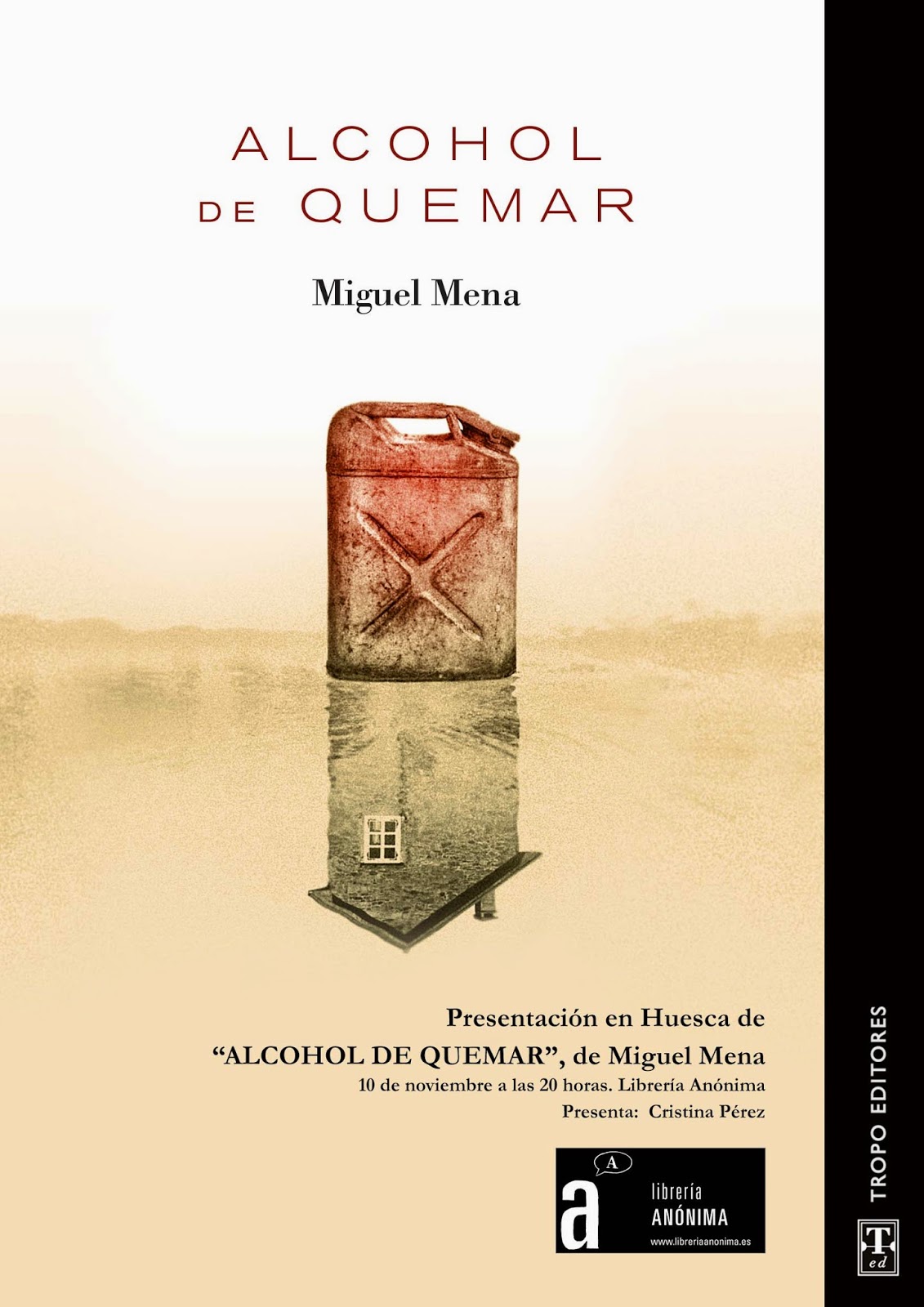 El lunes 10 de noviembre a las 20 horas presentación del nuevo libro de Miguel Mena: Alcohol de quemar (Tropo ediciones). La escritora y periodista Cristina Pérez acompañará al autor.