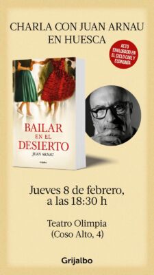 Juan Arnau charla  con Luis Lles  de su libro Bailar en el desierto  (Grijalbo) el jueves 8 de febrero a las 18,30 horas en el Teatro Olimpia de Huesca, tras la proyección de la película 24 HOUR PARTY PEOPLE (2002, Reino Unido. Versión en español) dentro del ciclo Economía y cine que organiza el Colegio Oficial de Economistas de Aragón y el Teatro Olimpia de Huesca.
