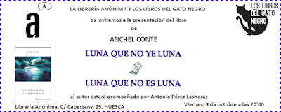 El viernes 9 de octubre a las 20 horas Ánchel Conte presentará en la librería Anónima su Luna que no ye luna. Luna que no es luna, poemario que ha recuperado en una edición ampliada la joven editorial Libros del gato negro. El autor estará acompañado por Antonio Pérez Lasheras.Al finalizar, tomaremos un enate.
